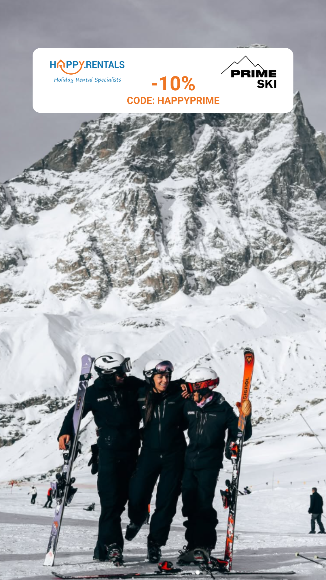 Happy.Rentals guests benefit from an exclusive 10% discount on Prime Ski lessons, making the experience even more enjoyable and complete.